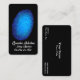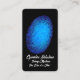 Una huella digital bajo una luz negra en un fondo negro. Esta es una tarjeta de visita para investigadores privados, agencias de detectives o profesionales de seguridad La tarjeta se puede modificar fácilmente (para introducir en el nombre de su negocio, texto para decir, nombre, título, dirección, número de teléfono y dirección de correo electrónico). También puede agregar o quitar texto con bastante facilidad. Por ejemplo, puede agregar en una dirección URL del sitio web u otra información importante. Personaliza esto para convertirlo en tu propio. Para obtener tarjetas de visita similares, consulte: https://www.zazzle.com/collections/business_cards_for_security_industry-119394861492793661 agente de investigación de huellas dactilares de la agencia de investigación de huellas dactilares de la prensa ocular privada investigador de seguridad informática robo de identidad