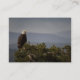 Águila calva madura sentada en un árbol de flores con la isla de Vancouver al fondo.