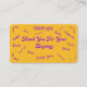 Haz una declaración audaz con esta tarjeta amarilla y morada "Gracias por tu negocio" 2 en 1. Ideal para pequeños paquetes de Amazon o eBay, estas tarjetas muestran su aprecio a los clientes mientras mantienen un toque profesional. Personalizar la parte posterior con tu nombre de negocio, sitio web y correo electrónico para un look personal y pulido