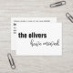 Mantén a tus amigos y familiares al día con tu nueva dirección usando estas tarjetas de gabinete mínimas. El diseño presenta elementos tipográficos contrastantes, todos en letras minúsculas. El nombre de su familia aparece en una letra en negrita y pesada en serif, a la izquierda del frente de la tarjeta. Debajo de eso a la derecha, he colocado un superpuesto gráfico de tipografía que presenta una fuente de escritura gorda y moderna, que dice "se han movido". En la parte posterior, se utilizaron variaciones del tipo de letra sans serif en la configuración de la plantilla, donde se añadirán sus datos personales; sólo se utiliza el campo proporcionado para reemplazar los portaobjetos de mi lugar por los suyos propios. Estos detalles aparecen alineados a la izquierda y en la parte superior de la parte posterior. En la parte inferior derecha, usando el mismo tipo de letra del guión de la parte delantera, he agregado "mantente en contacto". Si desea cambiar el tipo de letra o el tamaño de cualquiera de sus datos personales, sólo tiene que hacer clic en el personalizar. También allí podrá agregar más líneas de texto, como números de teléfono adicionales, si fuera necesario. El fondo se configuró como un blanco editable; cambie este color a cualquier color que prefiera. // También está disponible una variación con una redacción apropiada para los detalles de movimiento de una sola persona. // 93 // Diseñado por Melody Watson para la Muserie de Papel.