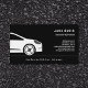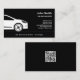 Una simple tarjeta de visita negra para la venta de automóviles, el conductor de coche, el taxi, el transporte, la reparación automática, el lavado de coches, etc. Incluye contacto completo, lista de servicios y un código QR en la parte posterior.