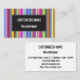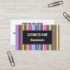 Este diseño de tarjeta de visita presenta un patrón de rayas (o líneas) de varios colores. En la parte delantera también hay un espacio rectangular de color oscuro con un nombre y una profesión/rol/título/posición que pueden ser personalizados. La parte posterior presenta un diseño sencillo que incluye un nombre, una profesión/rol/título/posición, y detalles de contacto que se pueden personalizar. Este diseño de tarjeta de visita podría ser utilizado por un profesional, o tal vez por un propietario de una pequeña empresa. [~Z0000061]
