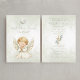 Una carta sencilla y encantadora para el bautismo de una niña, con un ilustracion dulce de un pequeño vestido de blanco con alas de ángel. El ilustracion es totalmente personalizable y se puede sustituir fácilmente por una foto de su elección. Estas tarjetas hacen bellos favores de bautismo y recuerdos sentidos para sus invitados.