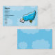 Una tarjeta de visita personalizada que incluye un ilustracion digital de un lindo pájaro personalizado con un pico y pies amarillos que sostienen un sobre sellado con un corazón en su pico. El fondo está formado por unas nubes pastel.
