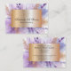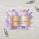 Entregar estas magníficas tarjetas de visita "Charming Lavender" a clientes, familiares y amigos y construir tu red para nuevos empleos. Sus clientes quedarán impresionados por su aspecto profesional de negocios. Hermosas flores de lavanda mezcladas con acentos de cobre crean un efecto impresionante. Un efecto metálico simulado se mezcla con un diseño de acuarela lavanda suave y purpurina simulado lo cubre todo. ¡Pídelos hoy mismo e impresionen a sus clientes para que reserven muchos empleos! Cambia la imagen floral con tu propio logo si lo prefieres.