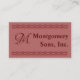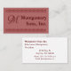 Monograma y nombre/negocio entre dos líneas gráficas. Fondo de color burdeos claro, el texto es burdeos oscuro. Al dorso, personalizar con nombre, título, dirección, información de contacto.