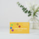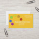 Personaliza esta tarjeta para un artista, pintor, artesano. Seis puntos de colores primarios: púrpura, azul, verde, amarillo, naranja y rojo están en una curva en la parte superior izquierda de la tarjeta. Información de contacto: Nombre comercial, dirección de la calle, sitio web, teléfono y correo electrónico están en blanco sobre fondo amarillo/naranja.