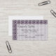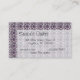 Bloque de calcinación en color púrpura y blanco. Ocho sombrillas rotan alrededor de un centro de morado oscuro. Una flor morada es el "hilo" de la piscina y también la franja de enmarcado entre bloques. El filtro blanco del 90% cubre la parte inferior derecha de la tarjeta, donde se pueden personalizar los detalles de la empresa (nombre comercial, dirección, números de contacto y nombre).