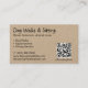 Personalizado tarjeta de visita para caminantes de perros con textura falsa de papel en ambos lados! ¡Intenta ver cómo se ve! Simplemente agrega tu información de contacto y URL de personalizado a tu sitio web, medios sociales y/o lista de precios. Tiene la opción de agregar una o dos URL. Hay un código QR en la parte delantera, y en la parte posterior con un área de texto y pequeñas huellas de pata. Existen varias opciones de tarjeta y estilos de papel disponibles.