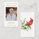 Dimensiones de la tarjeta de presentación: 3,5" x 2,0". Esta simple tarjeta de oración conmemorativa puede ser entregada como un aguijón en una Celebración de la Vida o servicio funerario o como un tributo especial a los que no pudieron asistir. Personaliza esta tarjeta con una foto, nombre, fecha favoritos. El dorso de la carta presenta un pájaro cardenal rojo con un elegante floral. Los cardenales aparecen cuando los ángeles están cerca. Texto y foto fáciles de personalizar. Nuestras más sinceras condolencias a usted y a su familia durante este momento tan difícil.