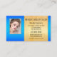 Una tarjeta de visita moderna con 4 fotos de tu elección (opcional) enmarcadas por un diseño artístico en azul turquesa y oro. Una hermosa tarjeta de visita para un esteticista o para quien quiera presentar un portafolio.