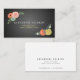 Esta bonita tarjeta de visita tiene fondo de pizarra/pizarra con una franja de rosa rosa rosa rosa, amapola roja, dalia gris y hojas verdes en la esquina superior izquierda, manzanas rojas y doradas, flores de manzana blanca y hojas verdes en la esquina inferior derecha. Personalízalo para tus necesidades. Perfecto para profesores, profesores sustitutos, tutores, instructores, estilistas de comida, nutricionistas, chefs, diseñadores de interiores, diseñadores gráficos, organizadores de eventos y cualquier profesional de negocios. Puedes encontrar productos coincidentes en mi tienda.