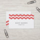 Guay tarjeta de visita moderna con un patrón de zags/chevron de color cereza sobre un fondo blanco.