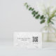 Bonitas tarjetas de visita para la moderna peluquería, con fondo de mármol y código QR. La inserción de un código QR permite a cualquiera escanearlo e ir directamente a su sitio web o a su sitio de reserva. Todo el texto es editable para adaptarse a cualquier negocio.