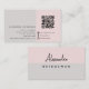 Diseño moderno, con tonos rosas y grises. Composición elegante, profesional y sofisticada para una tarjeta de visita minimalista. Colores femeninos en su mayoría para las mujeres. Iconos de medios sociales de facebook, incluido el instagram, así como icono de página web, pero se pueden eliminar, otros subidos en modo de edición. También se incluye el código QR del marcador de posición. Personalice el código QR. Personalice el frente y la parte posterior de la tarjeta mientras la tarjeta esté de doble cara.