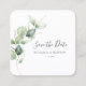 Cree su propia tarjeta Save the Date única y moderna con un código QR utilizando esta plantilla de vegetación suculenta Eucalyptus.