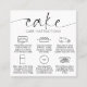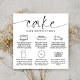 Tarjeta de asistencia para pasteles moderna con iconos elegantes de tipo de letra y de instrucciones para el cuidado de pasteles. Estas tarjetas mínimas de transporte e instrucciones de almacenamiento de pasteles en blanco y negro incluyen la información más importante sobre el cuidado, así como una nota de agradecimiento en la parte posterior con espacio para su logotipo y detalles de negocios. La adición perfecta a las cajas de pasteles y al diseño de los empaques de panadería.
