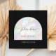 Eleva tu marca con nuestras impresionantes tarjetas de visita cuadradas con un atractivo fondo holográfico y un elegante diseño de arco. Perfecto para profesionales de la belleza como estilistas de uñas, maquilladores y peinadores, esta plantilla le permite mostrar su información de contacto, sitio web y medios sociales con estilo. Da una impresión duradera y anima a tu clientela: ¡pide hoy mismo!