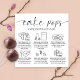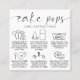 Tarjeta de atención moderna de Cake Pops con elegante letra de guión e iconos de cuidado. Las tarjetas de instrucciones de almacenamiento y de atención de torta blanca y negra incluyen la información más importante sobre el cuidado de los pasteles, así como una nota de agradecimiento en la parte trasera con espacio para el logotipo de la panadería y los detalles de contacto. La adición perfecta a tu diseño de empaque de pastelería dulce.