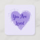 ¡Levanten los espíritus de la gente con tarjetas de bondad! Estas son tarjetas cuadradas del tamaño de las tarjetas de visita con palabras positivas y inspiradoras para repartirlas a los amigos, esconderse en los almuerzos de los familiares o irse a un extraño para encontrar que iluminar su día. Este diseño incluye un corazón púrpura lavanda y el texto "Eres amado".