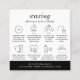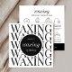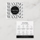 Tarjetas de postcuidado de cera minimalista con espacio para su logotipo, instrucciones del personalizado e iconos de cuidado. Con un diseño moderno en blanco y negro, este diseño de tarjeta de cuidado de salón de depilación cuenta con texto totalmente editable y colores para que pueda hacer tarjetas de visita de su guía de tratamiento de depilación de cuerpo completamente personalizado para dar a sus clientes.