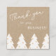Esta tarjeta de visita de apreciación del cliente incluye una frase moderna con letras a mano "Gracias" y bonitos árboles de Navidad con corazones para adornos y escritura blanca en una tarjeta de visita cuadrada. El texto es fácil de editar en esta tarjeta para hacerlo propio. Puede ajustar el mensaje según sea necesario para agregar información sobre su producto, ofrecer un descuento especial a los clientes repetidos o solicitar una revisión en su sitio web o en su medio social. El diseño funciona bien para el marketing invernal. Puede ajustar esta tarjeta en pedidos comprados en línea para expresar su gratitud y colaborar con sus clientes.