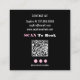 Diseño de una plantilla de tarjeta de visita editable para artistas de uñas, con código QR, identificadores de medios sociales y tipografía vintage en rosa y blanco sobre fondo negro. El código QR escaneable dirige instantáneamente a los clientes a su página de reserva. Patrón floral dentro del tipo.