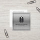 Tarjeta de presentación cuadrada masculina con un elegante color de fondo metálico plateado.