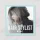 Hairstylista moderna foto cuadrada tarjeta de negocios. El diseño elegante y limpio, con un marco delgado en la parte delantera y trasera de esta tarjeta de visita fotográfica, le permite mostrar su propia foto en la parte delantera de la tarjeta. Su profesión y nombre están estilizados en letras modernas y rectas de tipografía audaz. Diseño adecuado para peluqueros, maquilladores, fotógrafos bloggers y otros negocios creativos. La foto en la tarjeta de visita es sólo una foto de ejemplo, por favor, sube la tuya propia. Diseñado por Luxbelle.