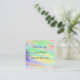Tarjeta de negocios con un gato sentado en un fondo de rayas pastel. La tarjeta puede cambiarse a otro propósito, ya que todas las palabras pueden ser tuyas.