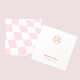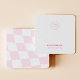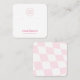 Tarjeta de visualización con un bonito patrón de cuadros rosa pastel. Los agujeros de plantilla se pueden ajustar o eliminar, así como toda la información de su empresa. Añade tu medio social o sitio web al final.