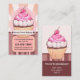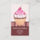 Tarjeta de visita con el ilustracion de un quequito rosa dulce de estilo retro. La imagen de la etiqueta frontal está en un archivo independiente y se puede eliminar si no la necesita. Hermosa tarjeta de negocios para un bizcocho y pastelería dulce. También se puede personalizar esta tarjeta de visita para eventos para niños con cupcakes.