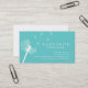 Este diente de león blanco elegante en tarjeta de visita verde azulada del fondo ofrece una silueta de un diente de león. Este diseño moderno sería perfecto para el planificador del boda, el fotógrafo o el otro profesional.