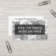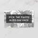 Servicio de piezas automotriz y plantilla de tarjeta de empresa de depósito de recuperación diseñada con piezas de auto ligeramente impresas en segundo plano en la parte delantera, de modo que el nombre de su empresa se destaca como destacada con la información de su negocio en la parte posterior, incluido el contenido de la industria que puede modificar.