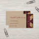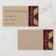 Diseño de alfombras orientales en rojo y crema - tarjeta de visita de Alma Wad. El papel Kraft le da un ambiente rústico y nostálgico.