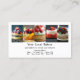 Tarjeta de visita con imágenes de pasteles dulces y postres en los colores de fondo personalizado. Hermoso para una panadería dulce o una empresa de restauración de postres.