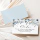 Esta elegante tarjeta de recinto de las colecciones Pressed Florals presenta polvorientos florales de color azul con delicados viñedos de vegetación, combinados con un moderno tipo de letra de escritura. Perfecto para cualquier temporada. Para realizar cambios avanzados, seleccione Personalizar -> Editar usando la herramienta Diseño.
