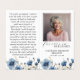 Esta versión plegable de nuestra encantadora tarjeta de oración conmemorativa Dusty Blue and White Floral Photo es una manera amable de invitar a tus amigos y familiares a celebrar y recordar la vida de tu ser querido. Su diseño tranquilo ofrece un ambiente relajante y un toque de belleza para todos los que llega a él. Hay un lugar para tu foto y detalles personales en el frente, junto con una tipografía de guion de bonito. El interior incluye lugares para dos imágenes más, una nota de agradecimiento y cualquier otro pensamiento o mención que quieras incluir. Colocamos el Salmo 23 en la parte posterior, junto con un diseño floral a juego, pero siéntase libre de reemplazar el texto con su pasaje o cita favorita. Busque nuestras piezas complementarias, como tarjetas de agradecimiento, invitaciones, etc. en nuestra colección conmemorativa de los funerales florales y azules, o nuestros monumentos y celebraciones más grandes de la colección Life.