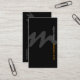 Esta elegante tarjeta de presentación del editor de vídeo de guiones audaces presenta un gran guión en negrita en forma de monograma gris oscuro en el medio de la tarjeta sobre un fondo negro. Su nombre y título aparecen verticalmente en el borde derecho de la tarjeta en blanco y naranja. Los demás datos de contacto, incluido el logotipo de su empresa, aparecen en la parte posterior de la tarjeta. La parte posterior de la tarjeta también incluye una letra monograma más pequeña en el mismo tipo de letra del guión. Perfecto para fotografía, videografía, fotografía, video, imágenes, temas artísticos.