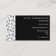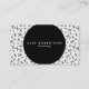 Un diseño profesional que ofrece un modelo simple de tijeras negras en un fondo blanco con un círculo negro grande en el centro para su nombre y profesión. Esto sería conveniente para cualquier persona que trabaja con las tijeras tales como un peluquero, un peluquero, un sastre o una modista.