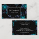 Un elegante patrón floral turquesa y violeta parece brillar en esta plantilla de tarjeta de visita negra. Un diseño clásico para una variedad de industrias. © 1201AM CREATIVE
