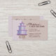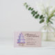 Un diseño dulce para una tienda de dulces, perfecto para una panadería o un pastelero especializado. Sobre un delicado estante de tortas marrones, sobre un fondo lilaco violeta de dos tonos y capuchino, se encuentra una torta fiesta bonito con espolvorines rosados y decoraciones espolvorosas de confetti. El texto marrón chocolate profundo, tanto en la parte frontal como en la parte posterior, permite personalizar fácilmente con toda la información importante de su negocio.