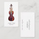 Una tarjeta de visita violinista única y elegante sobre un fondo blanco con sorprendentes y extravagantes toques florales sobre el violín, símbolo que destaca la elegancia de este instrumento musical.