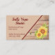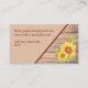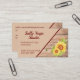 Esta moderna y elegante tarjeta de visita está decorada con un girasol amarillo acuarela, aguijones y una abeja sobre un fondo de madera. Ideal para pequeñas empresas como instructor de yoga, fotógrafo, terapeuta, entrenador y muchas más. Personalizar con tu nombre de negocio, nombre y datos de contacto, luego al dorso agrega tu correo electrónico y dirección web, así como cualquier otra información.