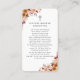 Dimensiones de la tarjeta de presentación: 3,5" x 2,0". Esta simple tarjeta de oración floral elegante conmemorativa puede ser entregada como un aguijón en una Celebración de la Vida o servicio funerario o como un tributo especial a los que no pudieron asistir. Personaliza esta tarjeta con una foto favorita y tu elección de oración o poema al dorso de la tarjeta. Fácil de personalizar.