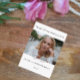 Las simples y elegantes tarjetas de oración de fotos proporcionan comodidad a cualquiera que asista a un funeral, servicio funerario o despertador. El diseño clásico de tarjetas con una bifurcación de buen gusto se puede personalizar con su propia información. La parte trasera tiene un sentimiento de oración que está disponible para usar. Puede adaptarlo como desee o eliminarlo por completo.