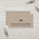 Haga una impresión duradera con nuestra elegante tarjeta de visita en monograma. El fondo de la impresión de lino beige y el emblema dorado cepillado muestran su profesionalismo como empresa de gestión de riqueza, planificador financiero o asesor. Comparte tu información de contacto con estilo.