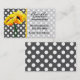 Elegante tarjeta de visita hecha en gris con puntos de polka blanco. Bonitos gráficos de amapolas amarillas decoran la parte delantera izquierda de la tarjeta. El texto en gris oscuro y negro está listo para personalizar según sus necesidades de negocio. Bonito destacamos la carta que todos recordarán.