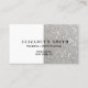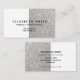 Estas elegantes tarjetas de visita cuentan con un purpurina plateado. Su nombre aparece en la tipografía de escritura a mano de moda. También hay espacio para incluir la información de sus medios sociales en la parte trasera.