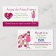 Cubierta de bonito o coser tarjetas de visita hechas en dibujos gráficos de color rosa, verde y blanco, con ángel personalizado y corazón de mosaico decorando la parte delantera.